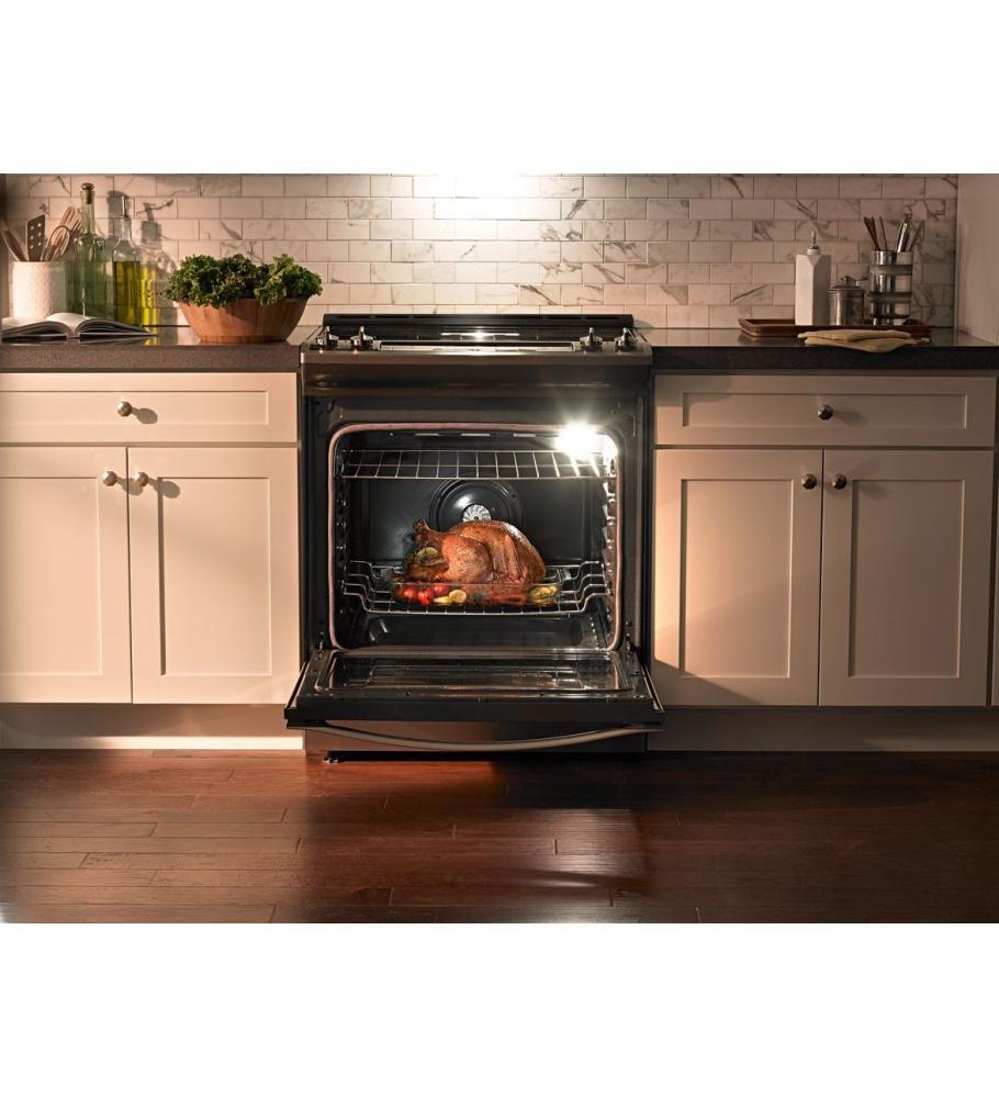 Leave unnecessary meal prep behind with the 6.2 cu. ft. front control electric range that fits your kitchen and delivers delicious results. True convection cooking helps seal in flavor and juices for perfect results in less time than non-convection ovens. You'll be able to skip the preheat and cook frozen favorites faster in this convection range with Frozen Bake technology. And thanks to the FIT system, it's easy to upgrade to a full-depth slide-in range made to fit in your existing kitchen cutout. When it's time for cleanup, AquaLift self-cleaning technology helps you wipe away messes in your slide-in electric range without harsh chemicals odors.