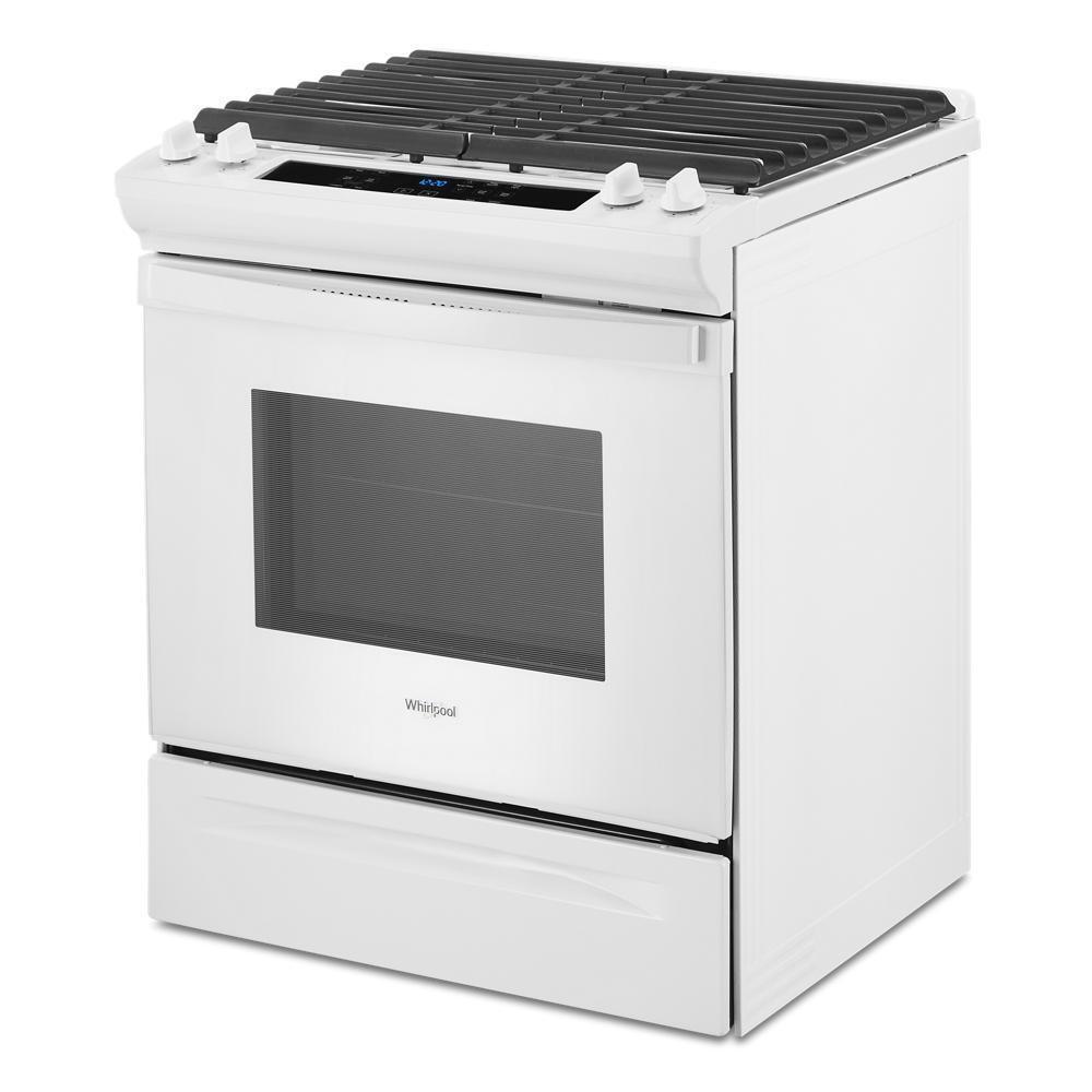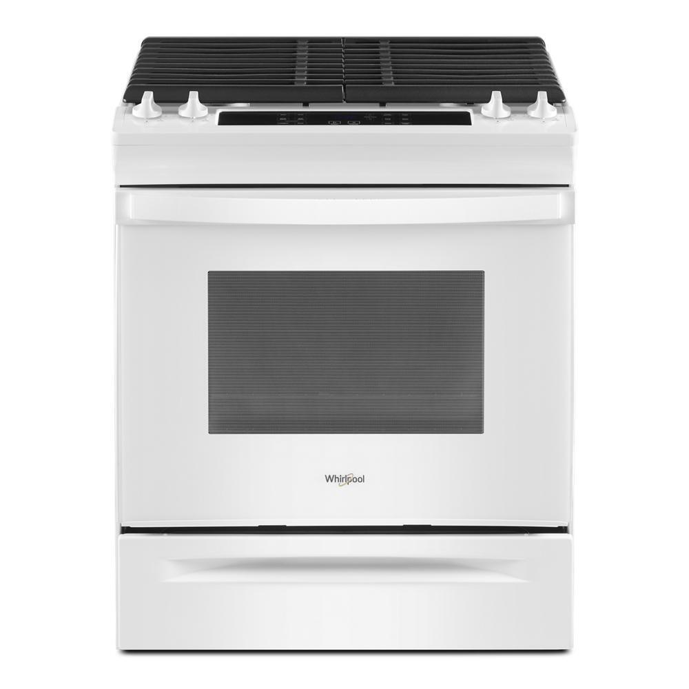 Simplify steps in the cooking process with this gas slide in range that lets you skip preheating for frozen favorites with Frozen Bake™ Technology. Get more flexibility on the cooktop with two high heat burners and edge-to-edge cast iron stove grates. This range is also equipped with a high-temperature, adjustable self clean oven cycle so you can clean without using chemicals.