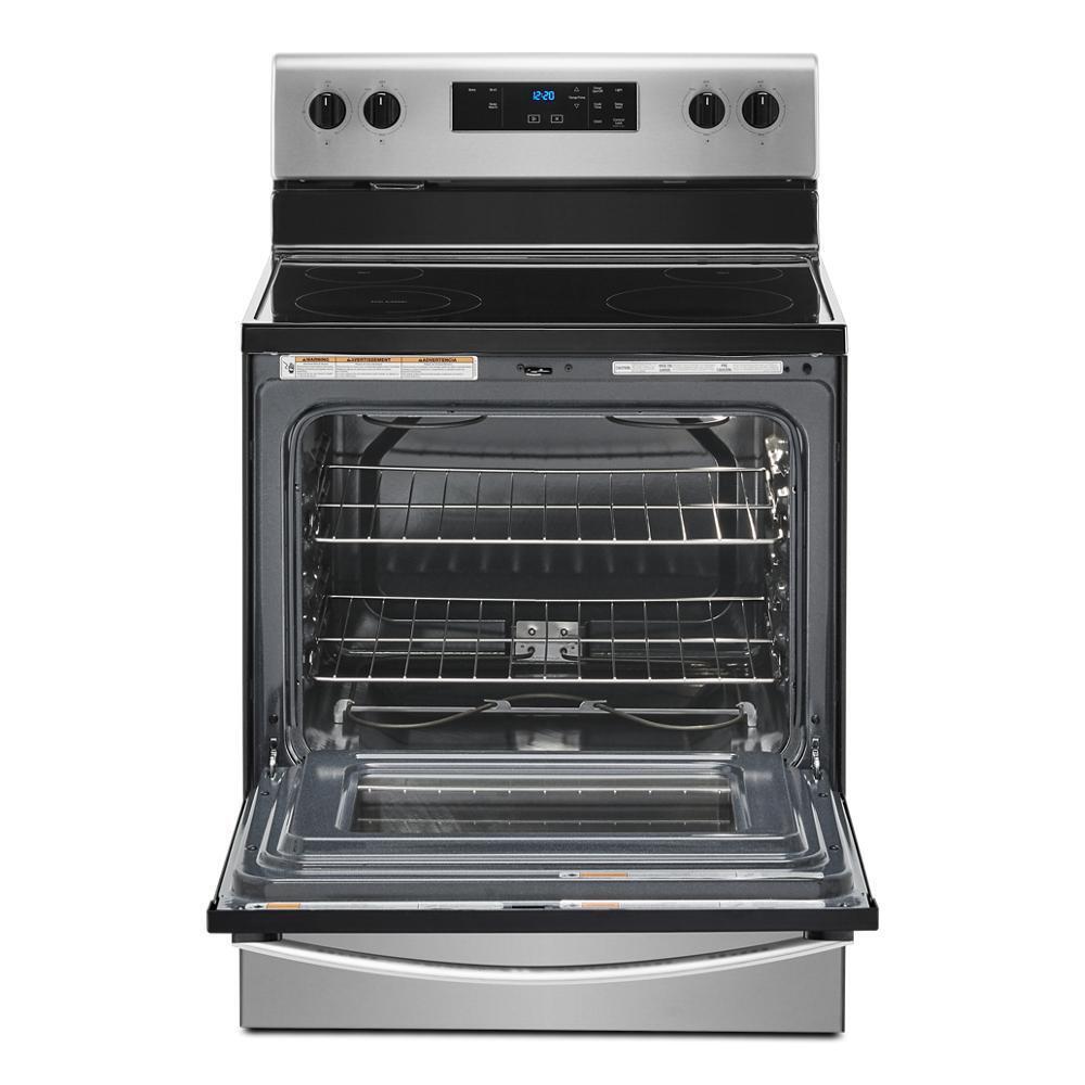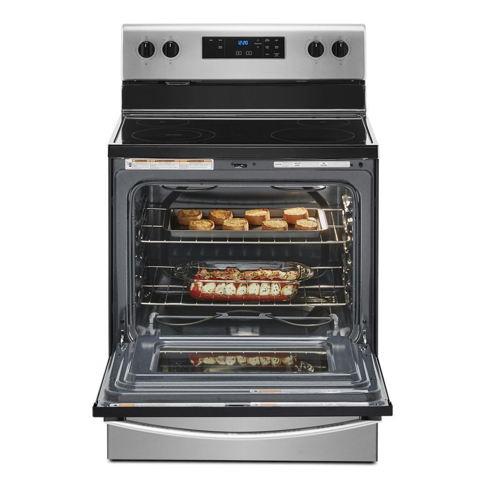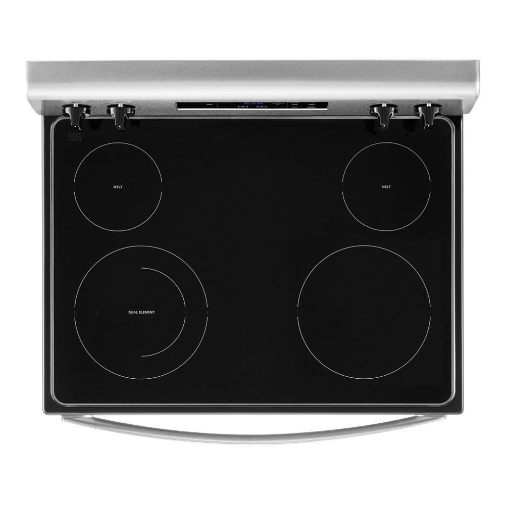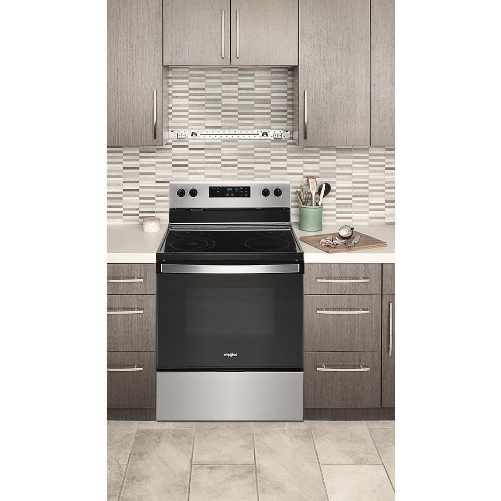 This Whirlpool® electric range with a dual element stove top helps you get dinner to the table, even on a hectic schedule. The Keep Warm setting prevents dinner from getting cold. Closed door broiling helps keep the kitchen comfortable. You can also avoid unintended use with an oven control lock.