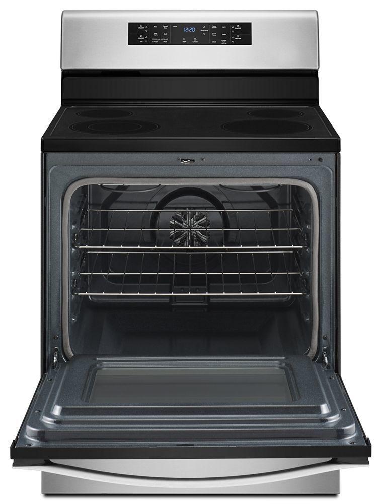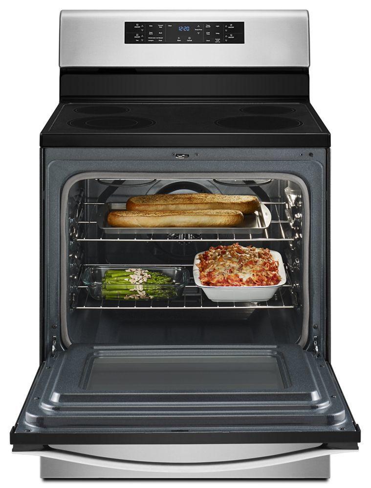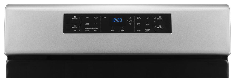 Cook for the family, even on a hectic schedule with our 5.3 cu. ft. knobless convection electric front control range with the easy-wipe ceramic glass cooktop. This cooking range is designed with features that help you get dinner to the table quickly. Skip preheating for favorites like pizza and lasagna with Frozen Bake technology. Our electric range features guided cooktop controls that help you control the heat without the guesswork when selecting the temperature you need. Cleaning your kitchen range is simple with adjustable self-cleaning settings that take on all kinds of messes.