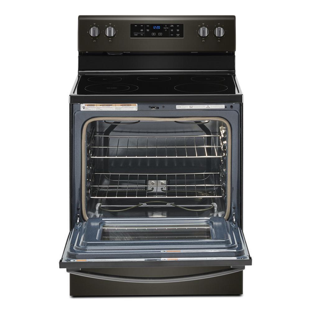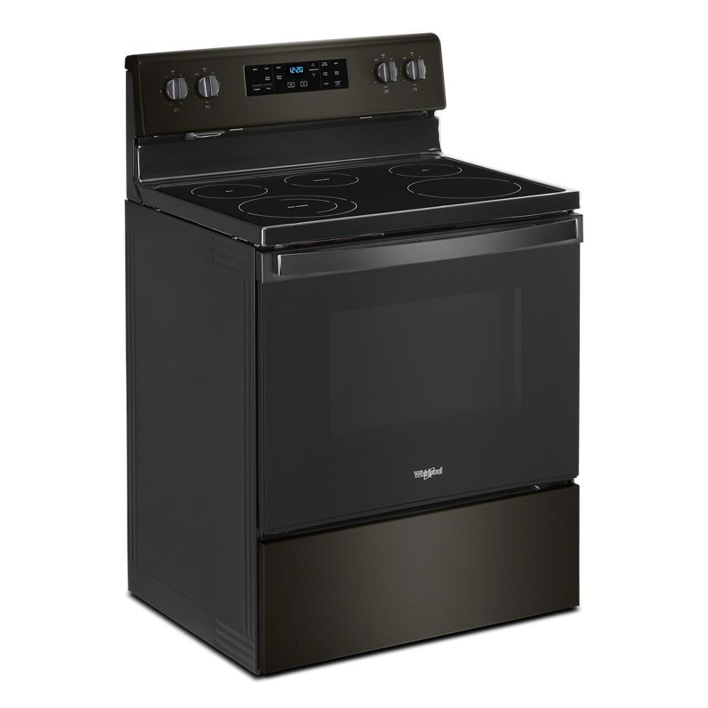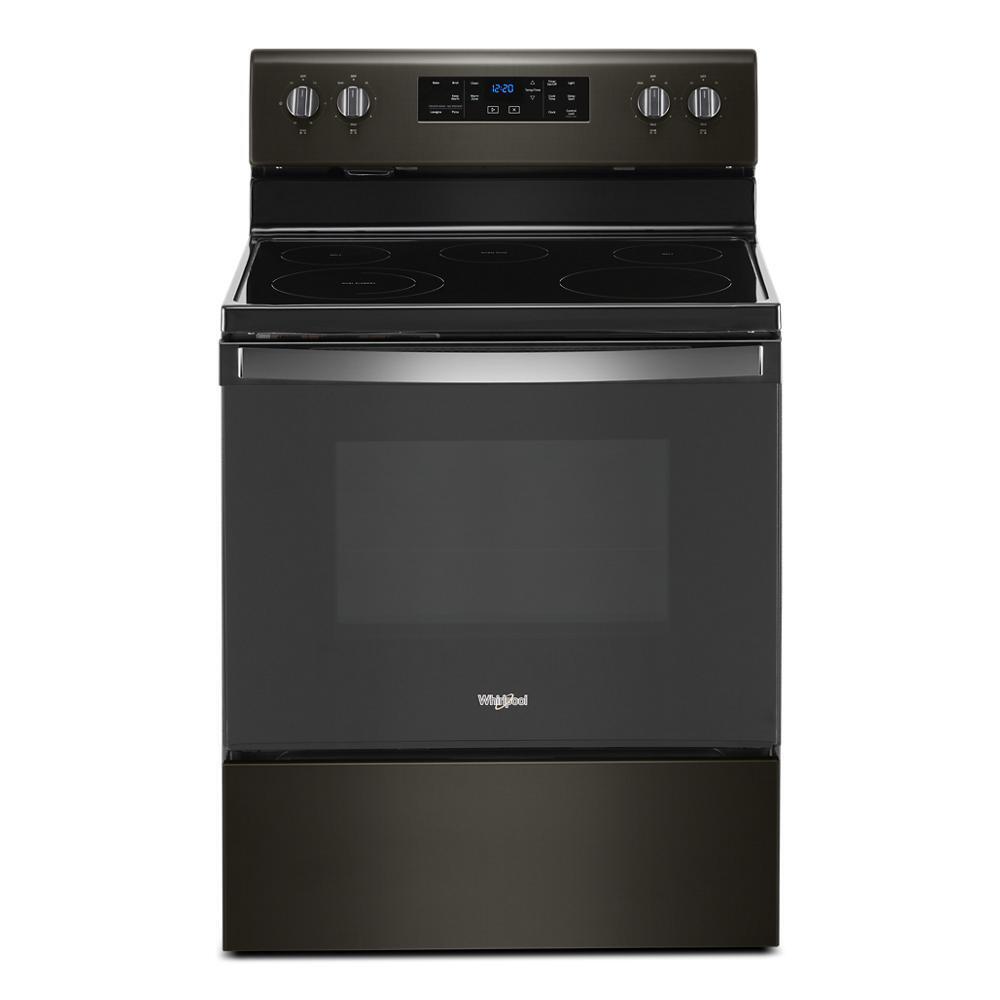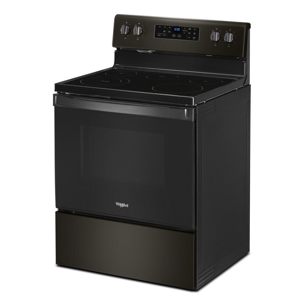 This Whirlpool® electric range with a dual element stove top helps you get dinner to the table. This fingerprint resistant range allows you to skip preheating for favorites like pizza with Frozen Bake™ technology. This self cleaning oven also prevents cooked food from getting cold with a Warm Zone on the cooktop and the Keep Warm setting in the oven.