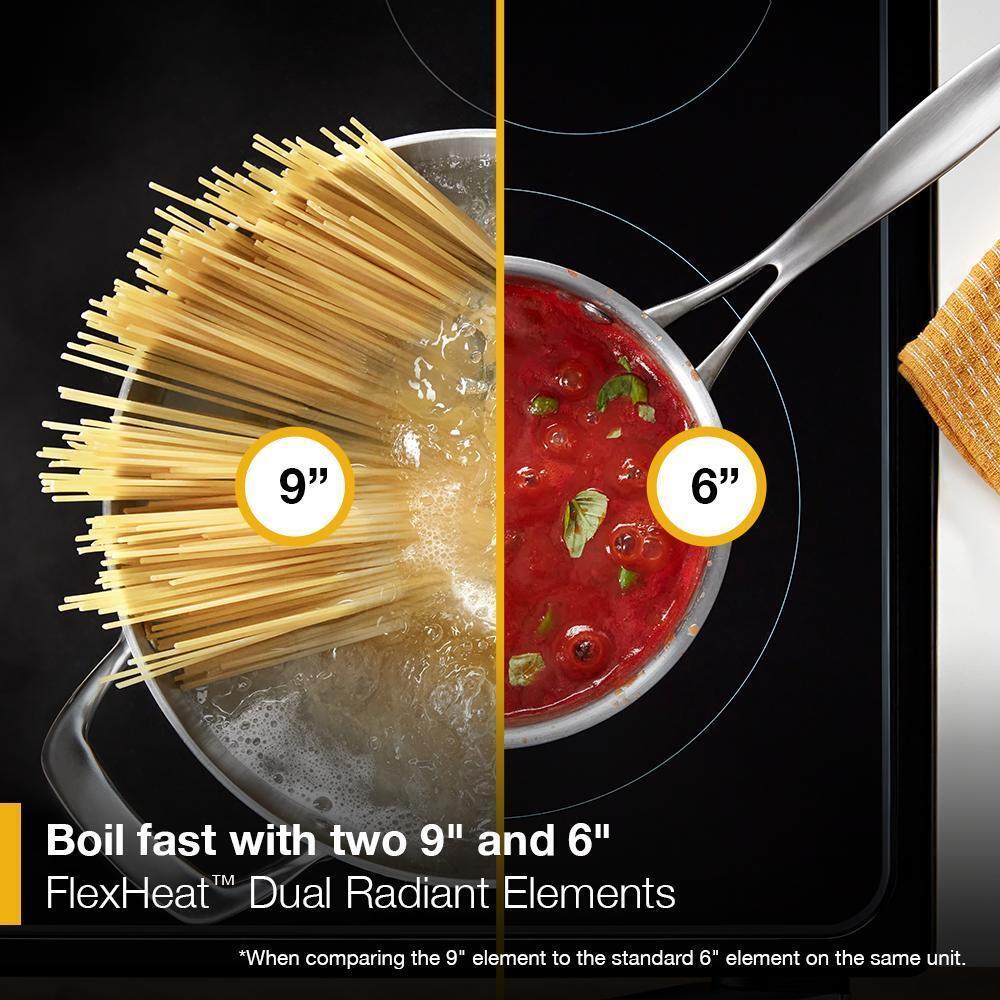- Boil fast with two 9" and 6" FlexHeat™ Dual Radiant Elements