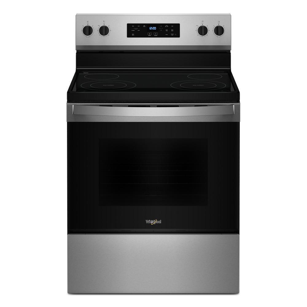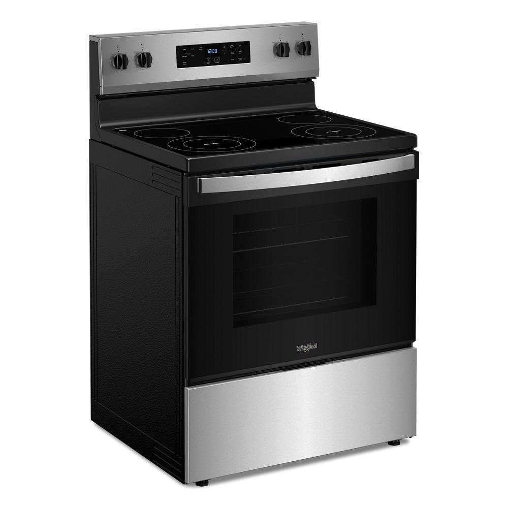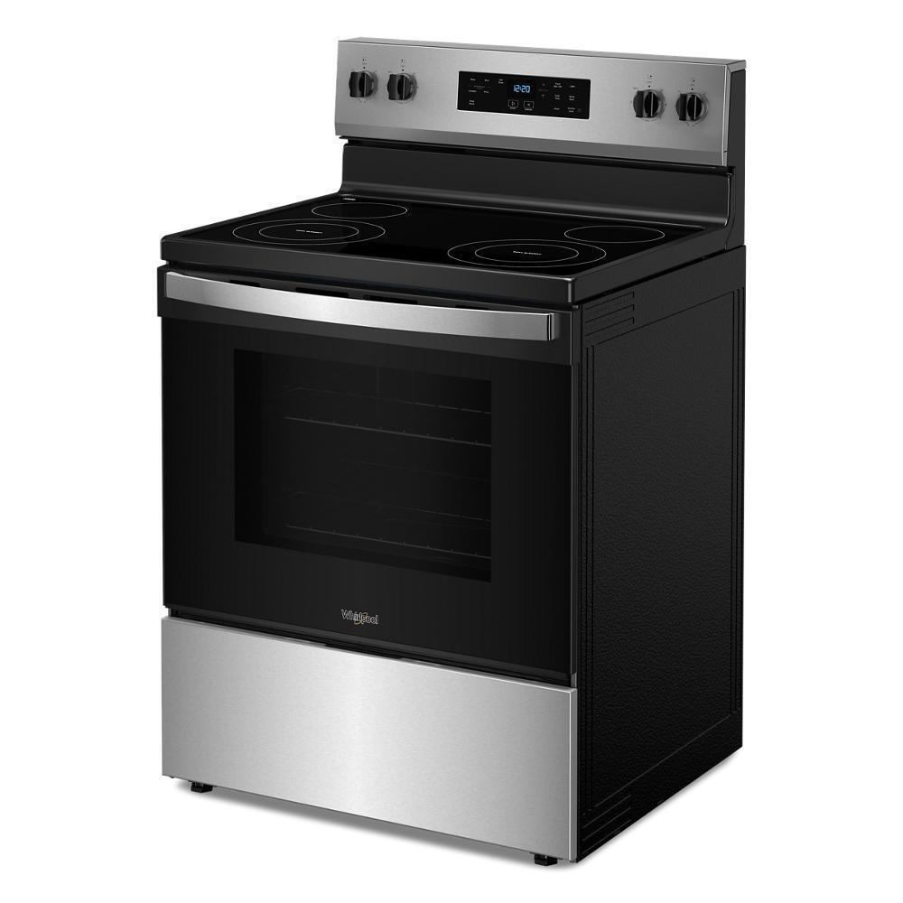 Make the most of your time in the kitchen with the Whirlpool 30 inch electric range, a self cleaning oven featuring dual electric elements and No Preheat Mode. This 5.3 cu ft conventional oven with Broil helps you add a toasty twist or melty magic to family classics, and features a built-in temperature sensor to help the oven Bake evenly. Plus, boil 40% faster* with two FlexHeat™ Dual Radiant Elements. *When comparing the 9" element to the 6" element on the same unit.