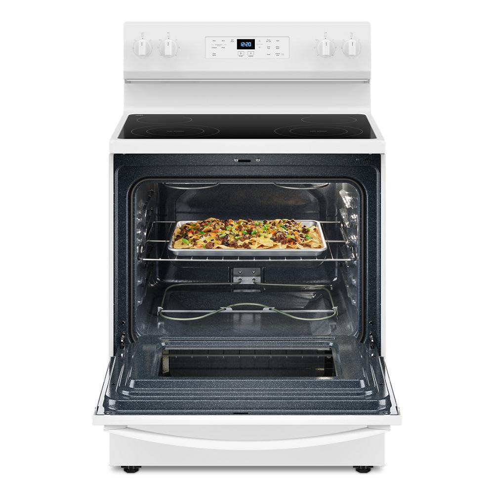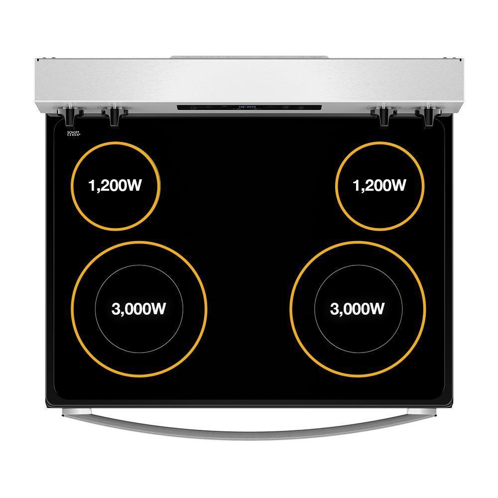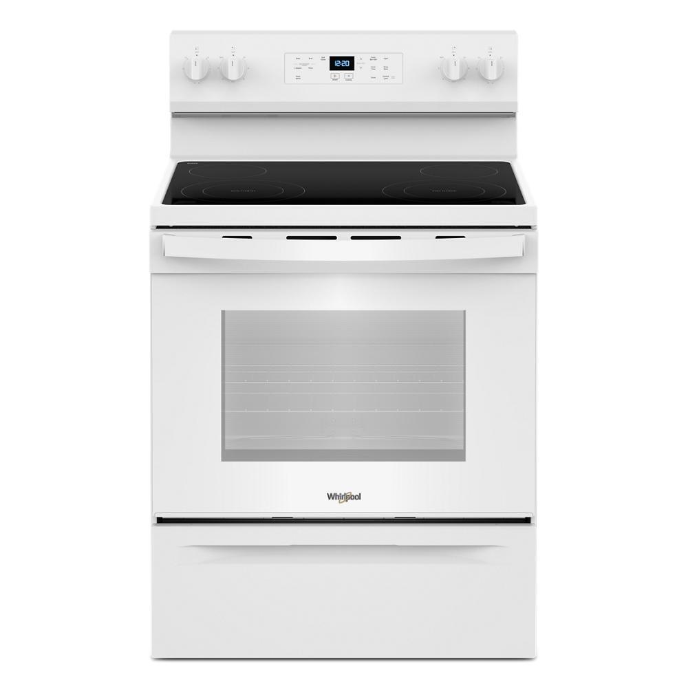 Make the most of your time in the kitchen with the Whirlpool 30 inch electric range, a self cleaning oven featuring dual electric elements and No Preheat Mode. This 5.3 cu ft conventional oven with Broil helps you add a toasty twist or melty magic to family classics, and features a built-in temperature sensor to help the oven Bake evenly. Plus, boil 40% faster* with two FlexHeat™ Dual Radiant Elements. *When comparing the 9" element to the 6" element on the same unit.