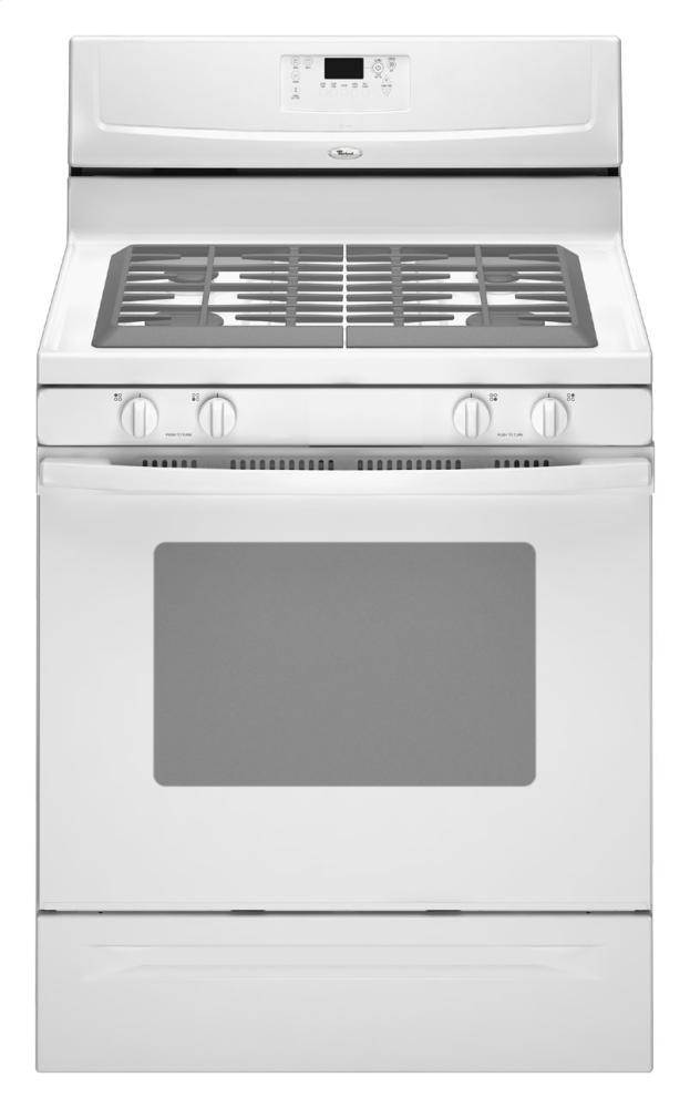 You're in control with this 30-inch freestanding gas range with continuous satin-finish cast-iron grates, which make it easy to shift pots and pans around the cooktop. Plus, the recessed grates add a touch of style to your kitchen. In the oven, the AccuBake® temperature management system enabled by 6th Sense technology uses a sensor to monitor oven temperature to deliver consistent results, even on multiple racks. And you can cook on your schedule and keep dishes warm with the Delay Bake and Oven Hold Warm options. On the cooktop, you can use cookware of various sizes on the two 15,500 BTU Power burners, one 9,500 BTU burner, and one 5,000 BTU AccuSimmer®burner. This range puts you in control of meal time, every time.