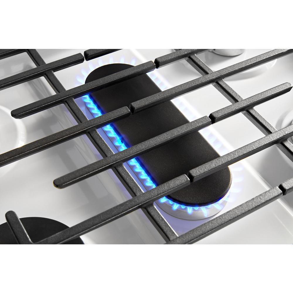 - Get more flexibility with grates that extend across the cooktop
