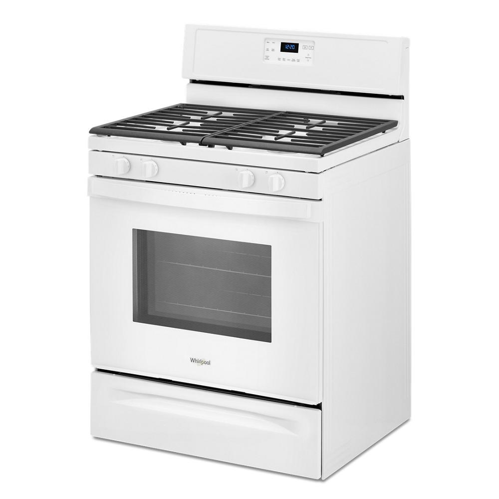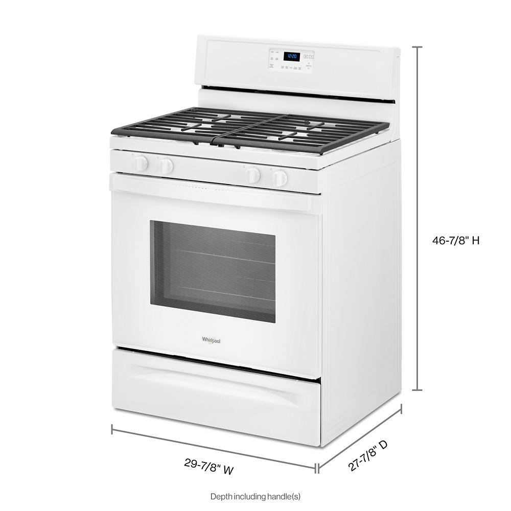 This Whirlpool® counter depth gas range with a SpeedHeat™ burner allows you to sear and boil quickly. Plus, get even baking with a temperature sensor, and prevent cooked food from getting cold with the Keep Warm setting. Closed door broiling helps keep the kitchen comfortable. Cleanup is easier with a self cleaning oven and dishwasher-safe cast-iron grates.