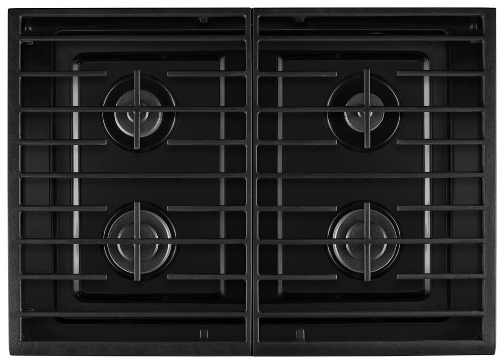 - Edge-to-Edge Cast-Iron Grates Maximize space with cast-iron grates that extend across the entire cooktop, giving you the flexibility to place pots and pans anywhere.