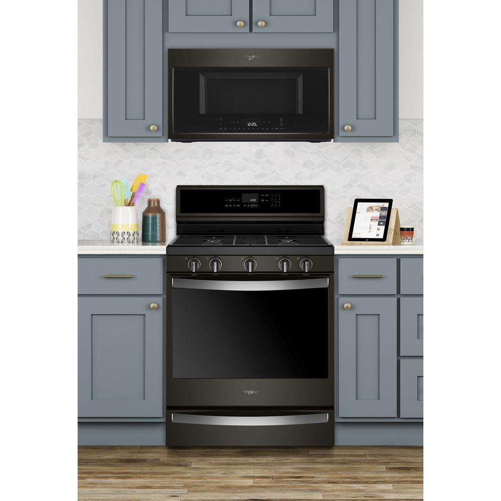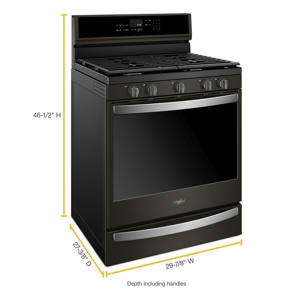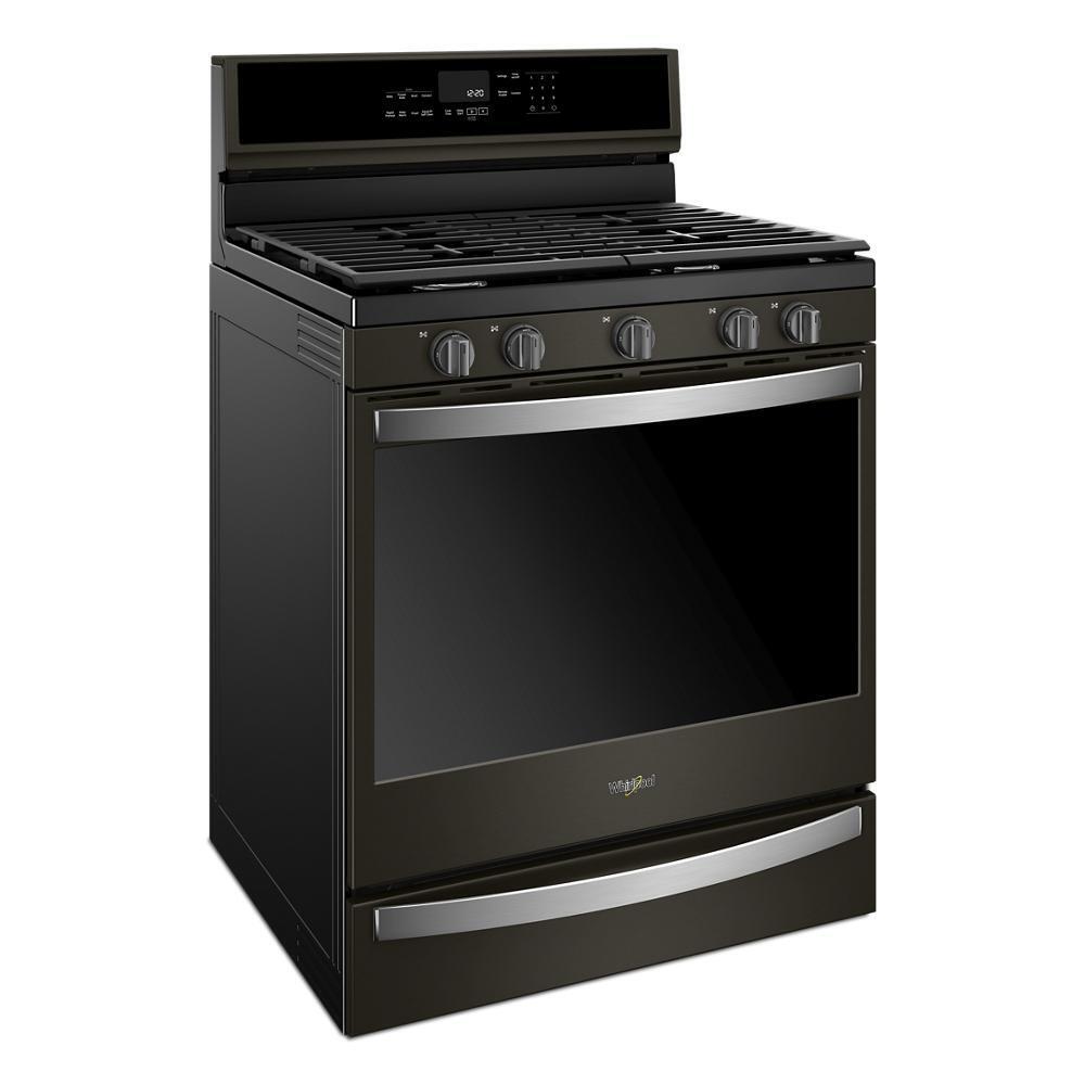 Cut out routine steps and get the right settings every time with this freestanding gas range. Scan-to-Cook technology lets you send instructions directly to the smart range to start cooking frozen foods in the self-cleaning oven using your smartphone or tablet. EZ-2-Lift™ hinged cast-iron grates give you quick access to cooktop spills for easy cleanup.