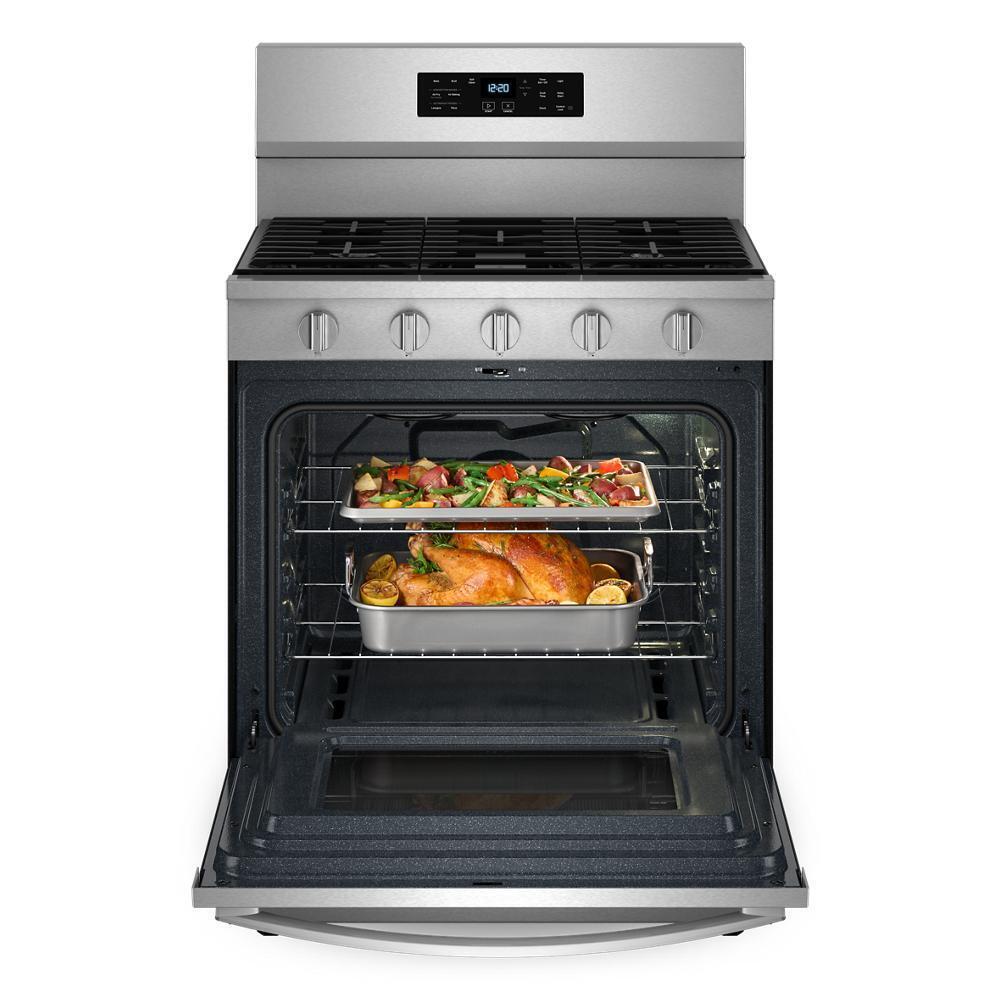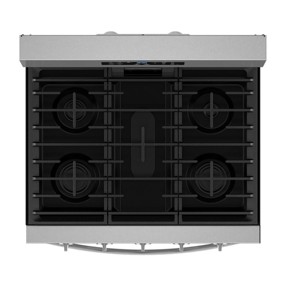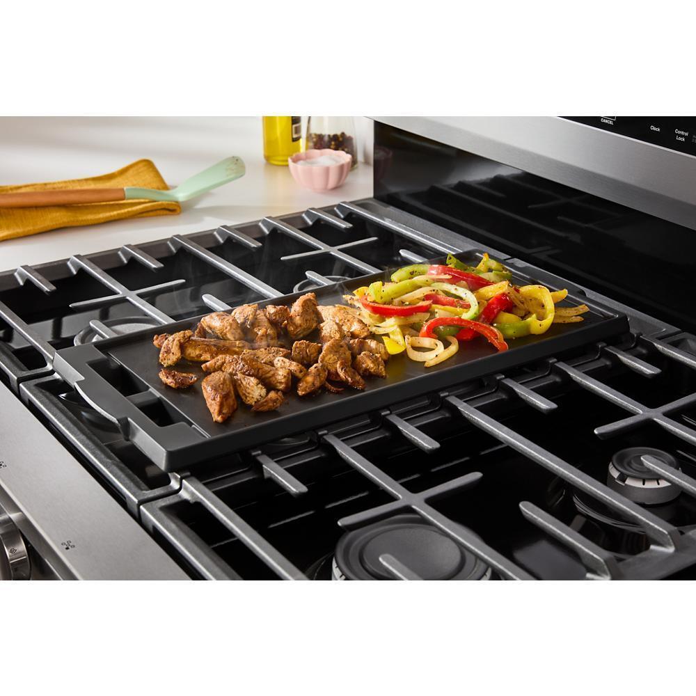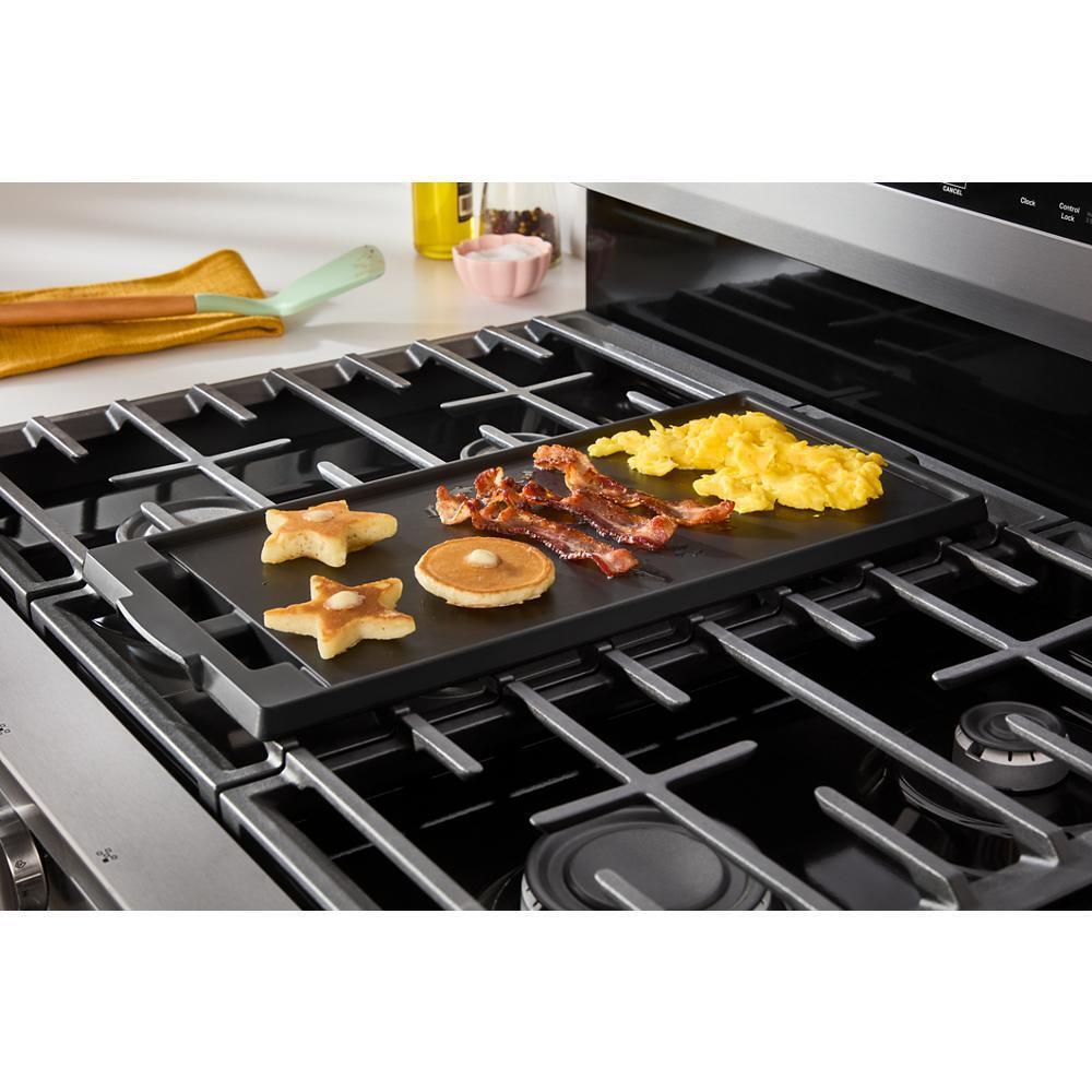 Experience the difference* of Air Cooking Technology with this 30-inch gas range. Get crispy fast with No Preheat Air Fry, and bake evenly on multiple racks with the dynamic air flow of Air Baking. Make feel-good meals with a variety of cooking modes, and bring a whole new world of cooking capabilties with the 12,000 BTU Griddle Zone *Compared to Thermal Bake
