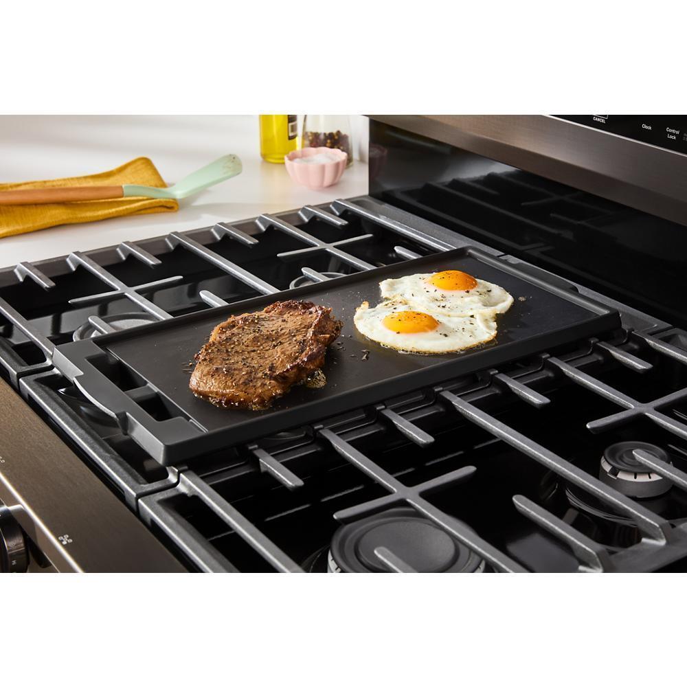 Experience the difference* of Air Cooking Technology with this 30-inch gas range. Get crispy fast with No Preheat Air Fry, and bake evenly on multiple racks with the dynamic air flow of Air Baking. Make feel-good meals with a variety of cooking modes, and bring a whole new world of cooking capabilties with the 12,000 BTU Griddle Zone *Compared to Thermal Bake