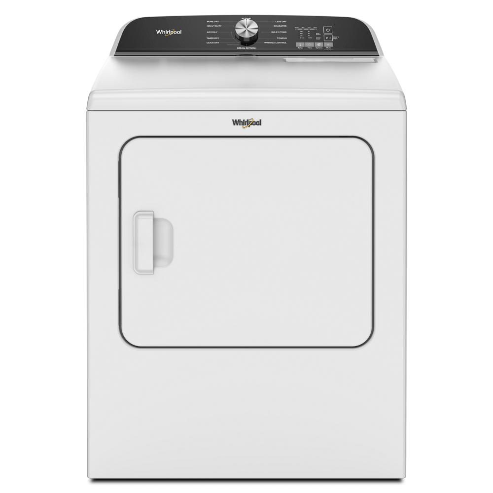 This Whirlpool® 7.0 cu. ft. Top Load Dryer uses Moisture Sensing to help prevent overdrying by stopping the load at just the right time and features an Air Only Cycle that tumbles your items without using heat. Release wrinkles without rewashing loads with the Steam Refresh Cycle that uses water and heat to get clothes ready to wear. Easily keep loads going on your schedule with the Wrinkle Shield™ Option which continues tumbling for 150 minutes after the cycle ends or use Timed Dry for extra drying time when you need it.