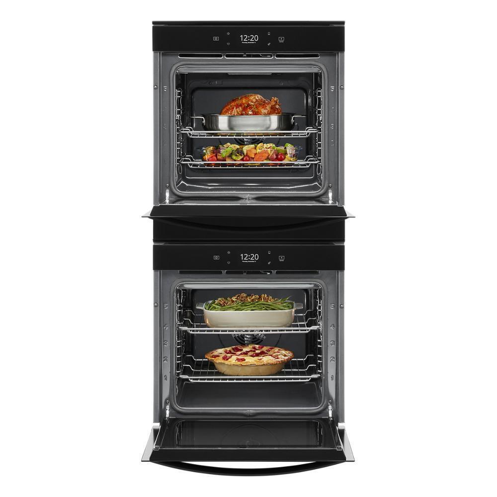 Cook however you want with a 24 inch double wall oven with convection. Bake multiple items simultaneously with True Convection Cooking and clean this 24 inch self cleaning wall oven using the upper oven's Adjustable Self-Clean Cycle. This Smart Wall Oven includes features like a Touchscreen that provides access to favorite settings and Voice Control with a Compatible Voice-Enabled Device.