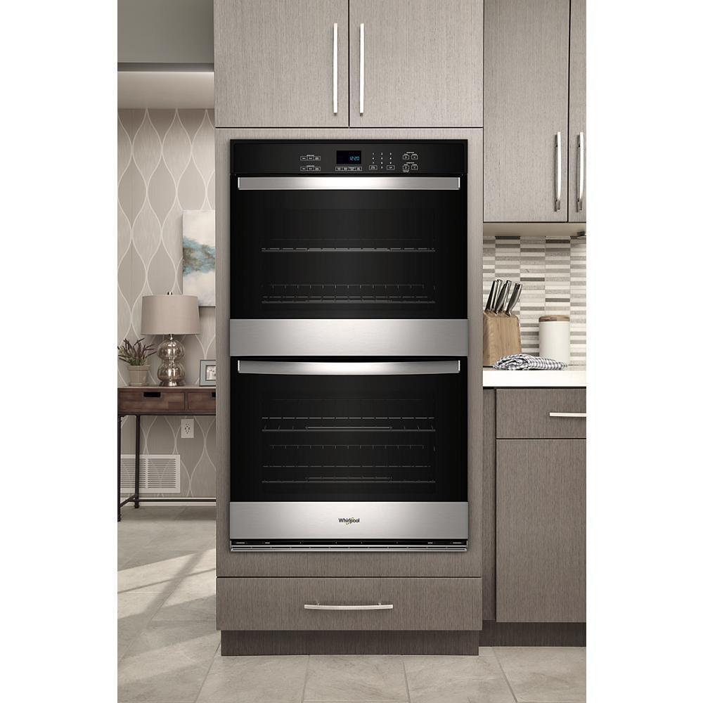 Take on every meal with a double wall oven that cleans without chemicals using the Adjustable Self-Clean Cycle. Use the oven Steam Clean Option to clean up everyday spills. Get meals to the table easily with this fast preheat oven and features like Electronic Touch Controls and an oven control lock.