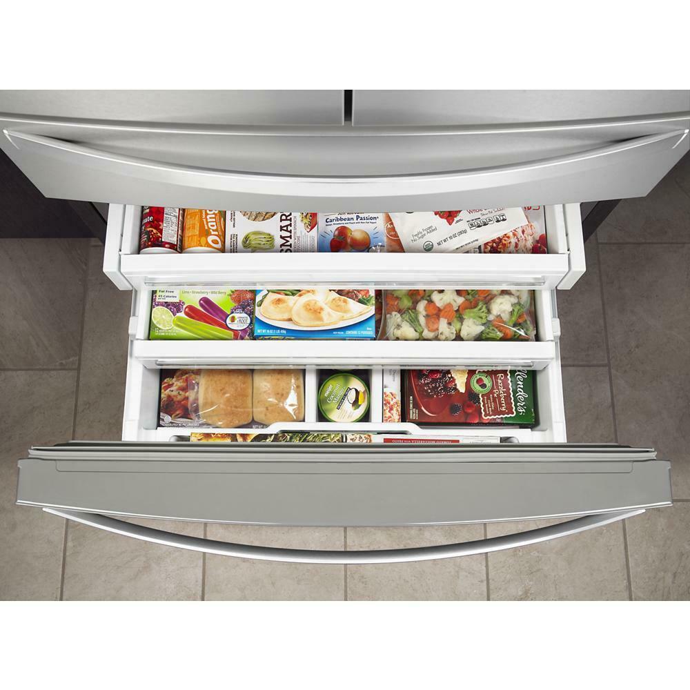 - Easily find frozen food with triple-tier freezer storage