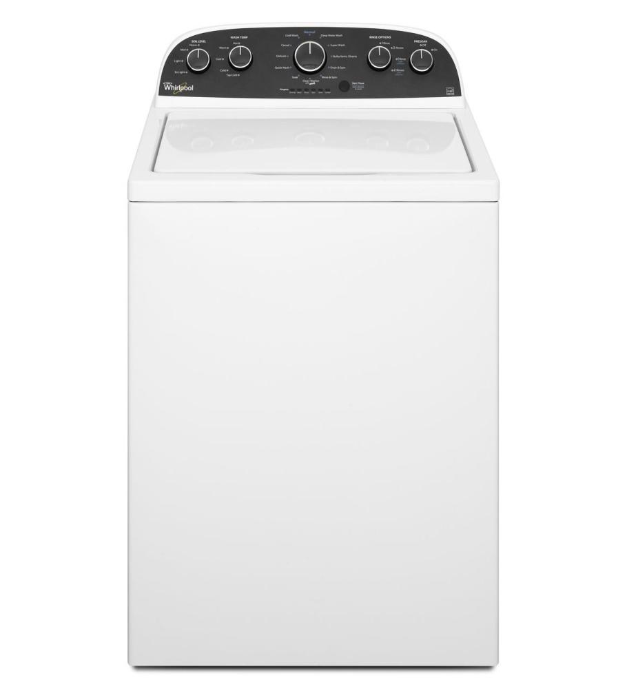 Enjoy exceptional cleaning and efficiency with a washer that combines the best of both worlds. The Whirlpool® 3.6 cu. ft. top load washer not only helps reduce shrinking and color bleeding with the Care Control temperature management system, but it's also ENERGY STAR® qualified to help conserve natural resources and save you money on utility bills. Try customizing cleaning with the Fabric Sense wash system. It makes sure you always have the right temperature, cycle time and agitation speed, while a smooth motion agitator takes care of bringing laundry to the bottom of the wash basket where cleaning takes place. Thanks to specially designed ridges, this model can even clean twice the average size load 1 .