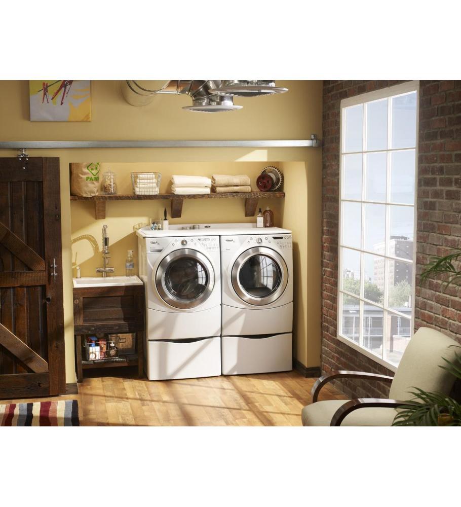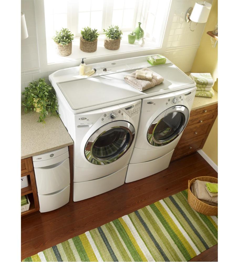 - Pedestal Drawer Offers a Convenient Area to Store Laundry Essentials