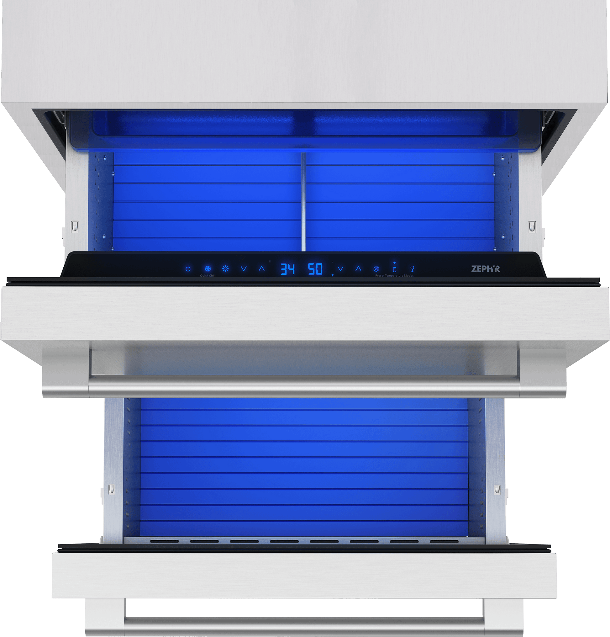 Zephyr PRRD24C2ASOD Presrv Refrigerator Drawers, 24in Compact, Outdoor, SS, 2 Zone